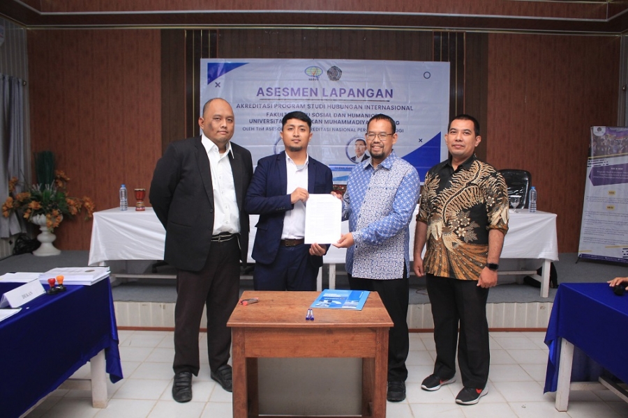 Akreditasi bagian terpenting dalam sebuah institusi untuk mendapatkan pengakuan yang memenuhi syarat atau kebakuan tertentu. Program Studi Hubungan Internasional program sarjana Universitas Pendidikan Muhammadiyah (UNIMUDA) Sorong resmi berdiri pada tahun ajaran 2020/2021, setelah mendapat Salinan Keputusan dari Kementrian Riset, Teknologi dan Pendidikan Tinggi pada 10 Oktober 2019. Setelah dua tahun beroperasi program Studi Hubungan Internasional, mengajukan akreditasi kepada BAN PT. Tanggal 5-6 Juni 2023, BAN PT melakukan kunjungan secara langsung sebagai tim assemen lapangan Program Studi Hubungan Internasional Unimuda Sorong. Assemen lapangan ini berlangsung selama 2 hari dengan di hadiri oleh Staff BAN PT, Dr. Wawan Budi Darmawan, S.IP., M.Si. sebagai Asssesor 1 dari Program Studi Hubungan Internasional Universitas Pandjajaran Bandung dan Dr. Phill. Aditya Perdana, S.IP., M.Si. dari program Studi Ilmu Politik Universitas Indonesia di Gedung Mas Mansyur.