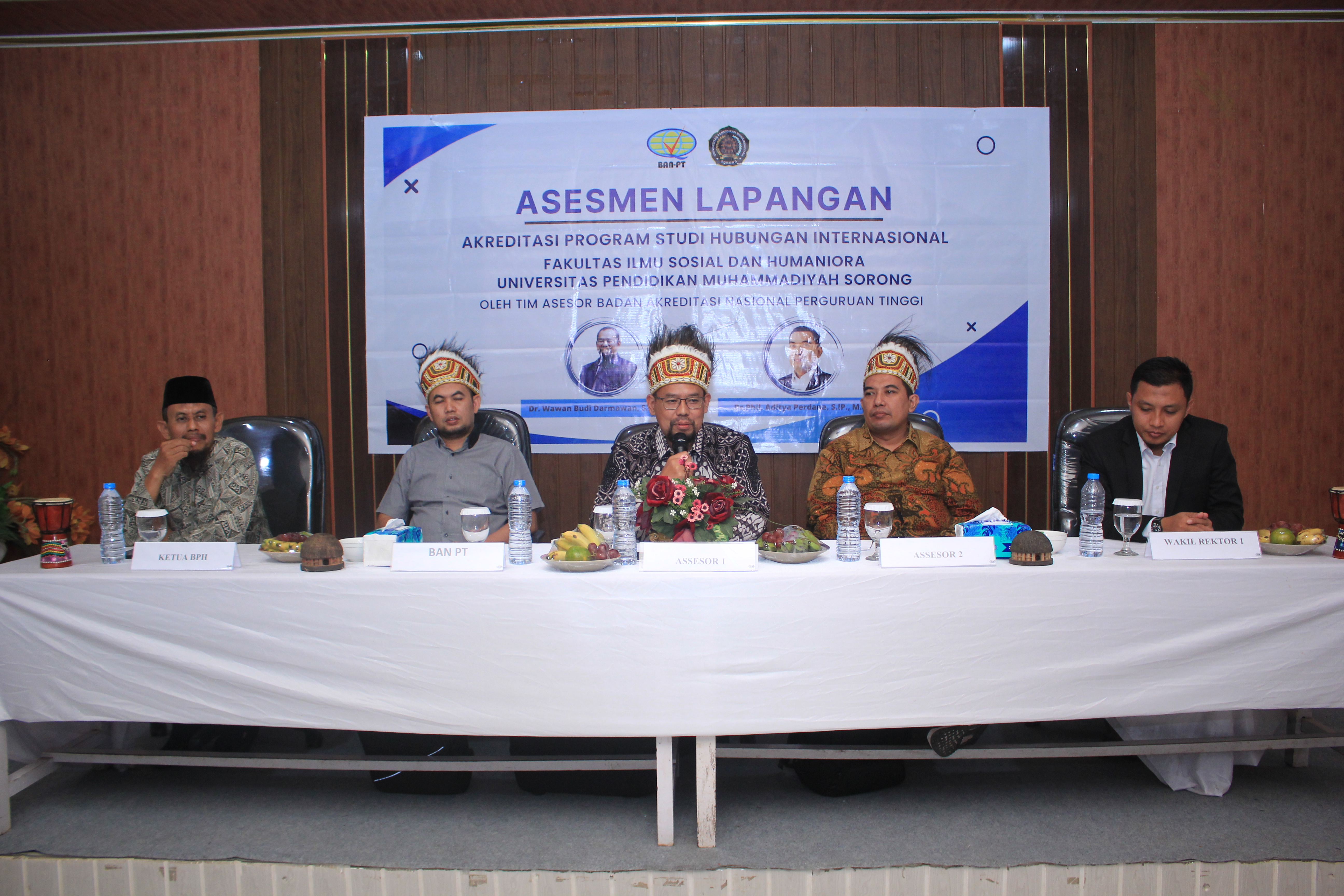 Pembukaan Assemen lapang Program Studi Hubungan Internasional dihadiri oleh Mukhlas Triono M.Pd. selaku Wakil Rektor I sekaligus membuka agenda ini. Turut Hadir Jusmin, M.Ec. Dev. selaku Wakil Rektor IV, Sirojjuddin, M.Pd. selaku Wakil Rektor V, Drs. Nursono Sidiq selaku Ketua BPH, Aldila Yulia Willeys Sutikno, M.H. selaku Dekan Fakultas Ilmu Sosial dan Humaniora serta Tim Taskforce Assemen lapangan program studi Hubungan Internasional, Ketua Biro dan Lembaga serta dosen dalam lingkup Fakultas Ilmu Sosial dan Humaniora. Terdapat 9 kriteria dalam penilaian akreditasi, kegiatan akreditasi ini bersifat mengkonfirmasi dari borang berupa Laporan Evaluasi Diri Program Studi dan Laporan Kinerja Program Studi sebagai tahap yang harus dilewati sebelum pelaksanaan Assemen Lapangan. Dr. Phill. Aditya Perdana, M.Si. menyampaikan “Jika dulu akreditasi dirasa perihal yang menakutkan, saat ini akreditasi sudah jauh menjadi lebih luwes”. Akreditasi ini merupakan akreditasi pertama bagi Prodi Hubungan Internasional Unimuda Sorong menuju predikat BAIK.