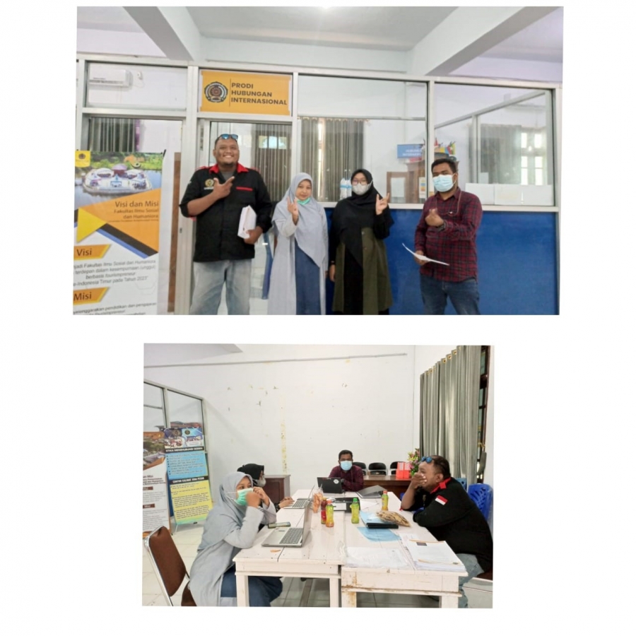 Sorong, 30 Juni 2022, Pada Pukul 11.10- 12.20 WIT Lembaga Penjaminan Mutu (LPM) Universitas Pendidikan Muhammadiyah Sorong (UNIMUDA) Sorong melakukan Monitoring dan Evaluasi terhadap enam (6) Program Studi tersebut salah satunya adalah Prodi Hubungan Internasional. MONEV merupakan kegiatan rutin yang dilakukan oleh Lembaga Penjamin Mutu (LPM) untuk memastikan kualitas dan kelengkapan administrasi proses pembelajaran yang ada di setiap prodi di Fakultas Ilmu Sosial dan Humaniora (FISHUM). Prodi Hubungan Internasional pada MONEV kali ini dibersamai oleh Bapak Yusron Difinubun, M.Acc. sebagai petugas MONEV dan sekaligus Gugus Penjamin Mutu (GPM) Fakultas Ilmu Sosial dan Humaniora. Pada kegiatan MONEV Prodi Hubungan Internasional dihadiri oleh Kaprodi Hubungan Internasional yaitu Muchammad Farid, M.H.I., Sekertaris Prodi Hubungan Internasional yaitu Nurinaya, M.H.I. serta Dosen Hubungan Internasional yang diwakili Agfajrina Cindra Pamungkas, M.H.I.Pada pelaksanaan monev dilakukan pemeriksaan seluruh kelengkapan berkas adminitrasi program studi terkait adminitrasi mahasiswa dan dosen semester ganjil 2021/2022. Secara keseluruhan persyaratan monev yang dilakukan oleh pihak LPM terpenuhi sebagaimana mestinya oleh program studi Hubungan Internasional selama proses belajar mengajar berlangsung dari tahun 2020-2022 tepat pada bulan Juni 2022. (Nurinaya)