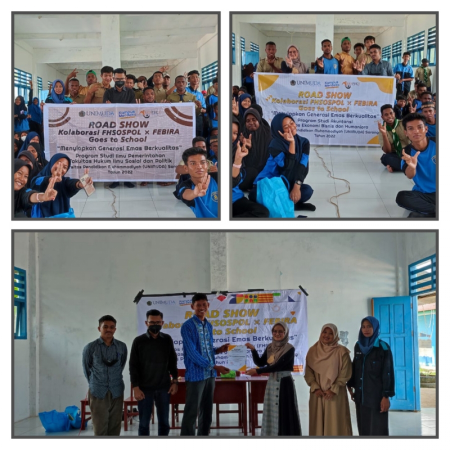 Pada Jumat 4/11/2022, bertempat di aula SMK Muhammadiyah Kab. Sorong Pukul. 09.00 WIT. , Tim Roadshow Unimuda berasal dari Fakultas Hukum Ilmu Sosial dan Politik (FHSOSPOL) serta Fakultas Ekonomi Bisnis Humaniora (FEBIRA) melaksankan sharing session terkait topik “Menyiapkan Generasi Emas Berkualitas”. Kunjungan ke SMK Muhammadiyah Kab. Sorong merupakan kunjungan Sekolah Menengah Atas ke lima pada program roadshow yang terlaksana. Sebelumnya kegiatan roadshow ini telah terlaksana di SMA N 3 Kota Sorong, MAN Kota Sorong, SMA N 1 Kabupaten Sorong, dan SMK Modelink Kabupaten Sorong.